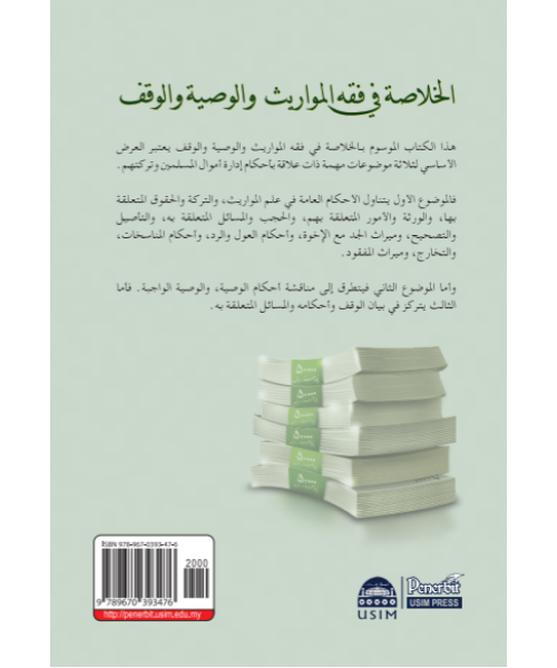 هذا الكتاب الموسوم بـالخلاصة في فقه المواريث والوصية والوقف يعتبر العرض الأساسي لثلاثة موضوعات مهمة ذات علاقة بأحكام إدارة أموال المسلمين وتركتهم