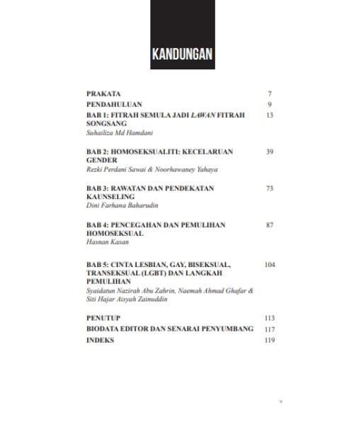 Buku “Homoseksualiti: Teori, Pencegahan dan Rawatan” ini mengupas isu homoseksual daripada pelbagai perspektif yang merangkumi perbincangan tentang fitrah semula jadi manusia dan fitrah songsang bersandarkan nas-nas yang jelas daripada ayat-ayat al-Quran dan hadis.