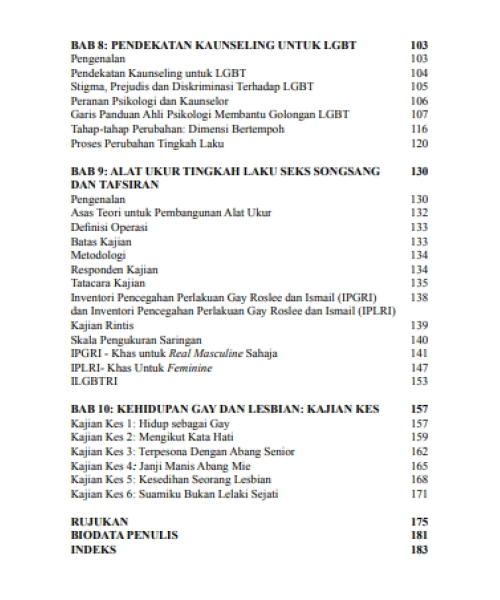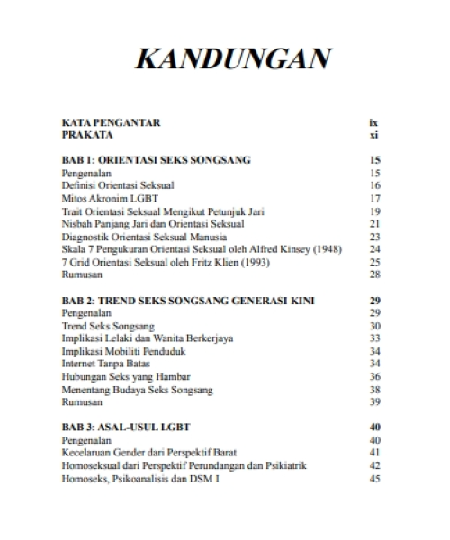 Buku ini cuba membawa pembaca untuk memahami maksud orientasi seksual, asal usul seks songsang dan LGBT dalam konteks Asia, peradaban Timur dan nilai-nilai Islam.