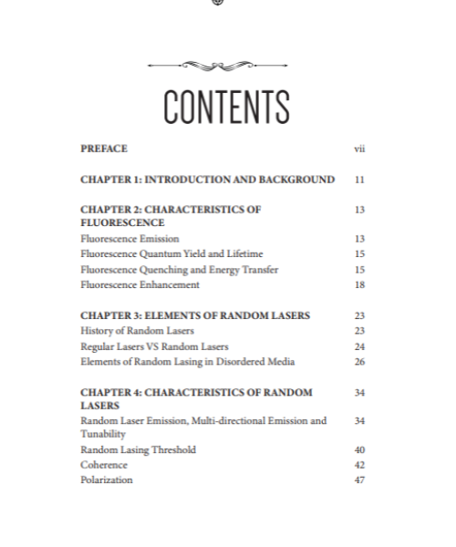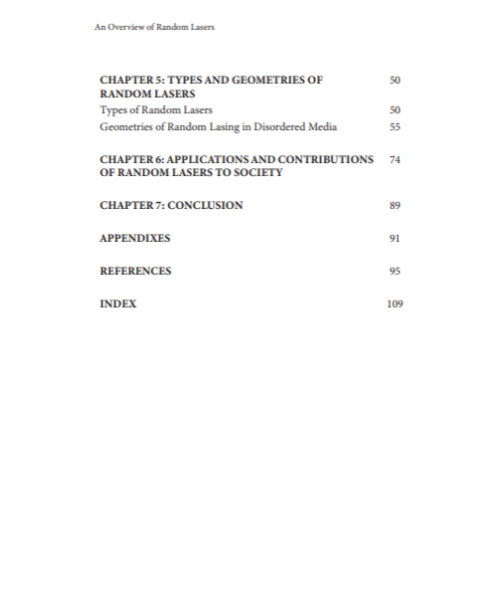 Therefore, it is hoped that readers can gain knowledge in random lasers and apply the knowledge to develop novel application of random lasers.