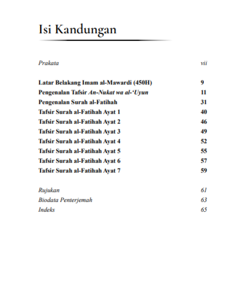 Mengapa Surah al-Fatihah digelar Ummul Kitab? Mengapa ia diulang 17 kali setiap hari dalam solat? Buku ini membawa anda menyelami keindahan tafsir klasik karya agung Imam al-Mawardi, An-Nukat wa al-‘Uyun, dalam bahasa Melayu moden yang mudah difahami.