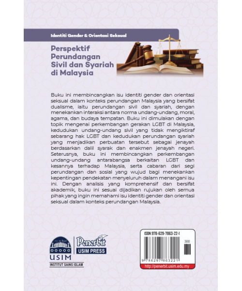 Buku ini membincangkan isu identiti gender dan orientasi seksual dalam konteks perundangan Malaysia yang bersifat dualisme, iaitu perundangan sivil dan syariah, dengan menekankan interaksi antara norma undang-undang, moral, agama, dan budaya tempatan.