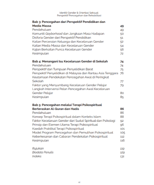 Buku ini sesuai dijadikan rujukan oleh semua pihak yang ingin memahami isu, kaedah pencegahan serta rehabilitasi mengenai identiti gender dan orientasi seksual.